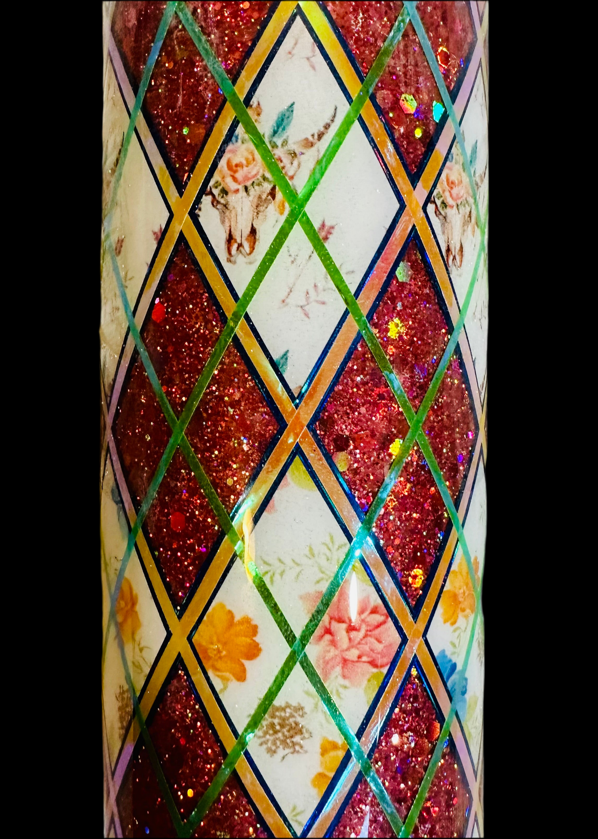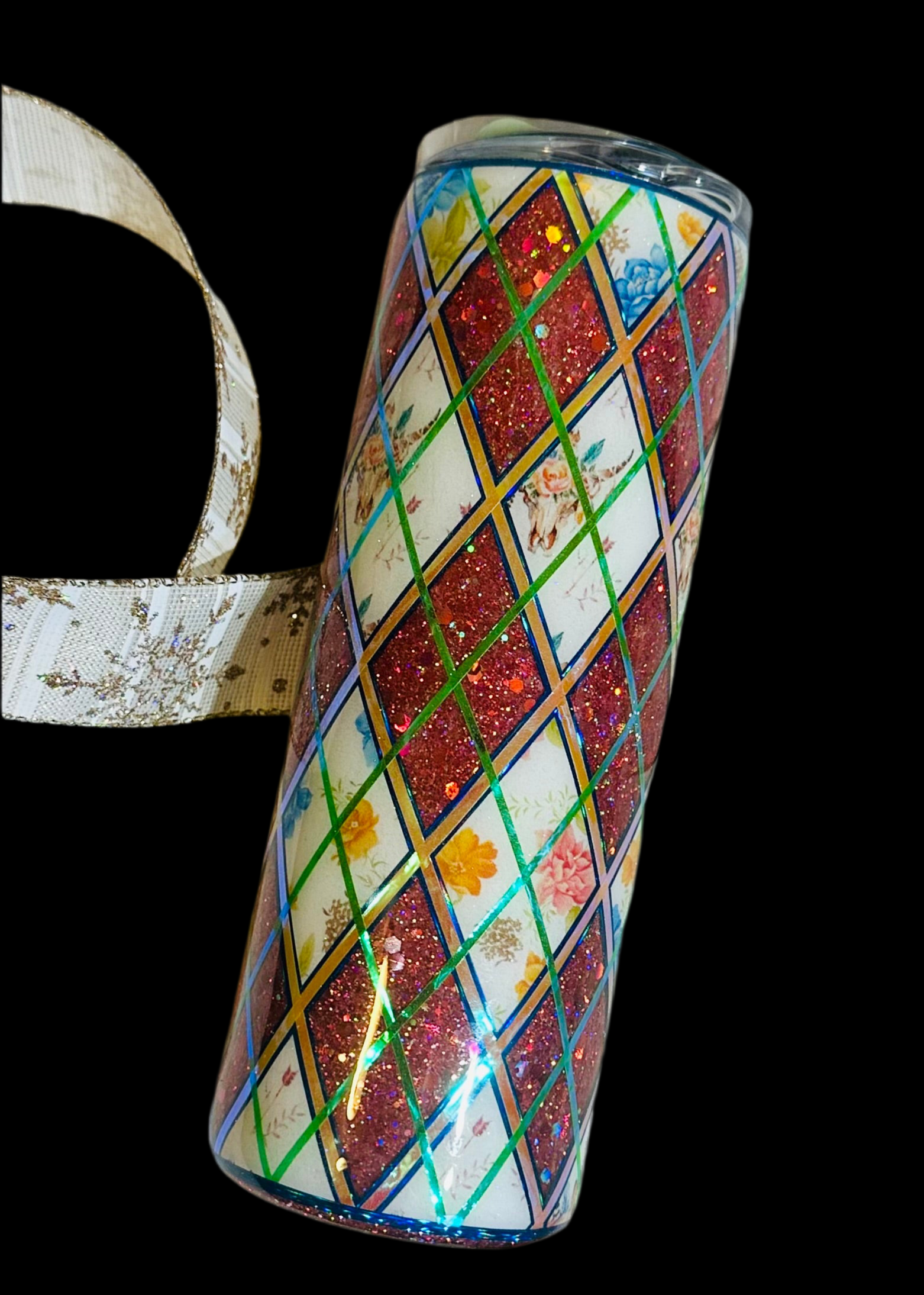 Cow skull and flowers with glitter epoxy tumbler 20 oz hand made