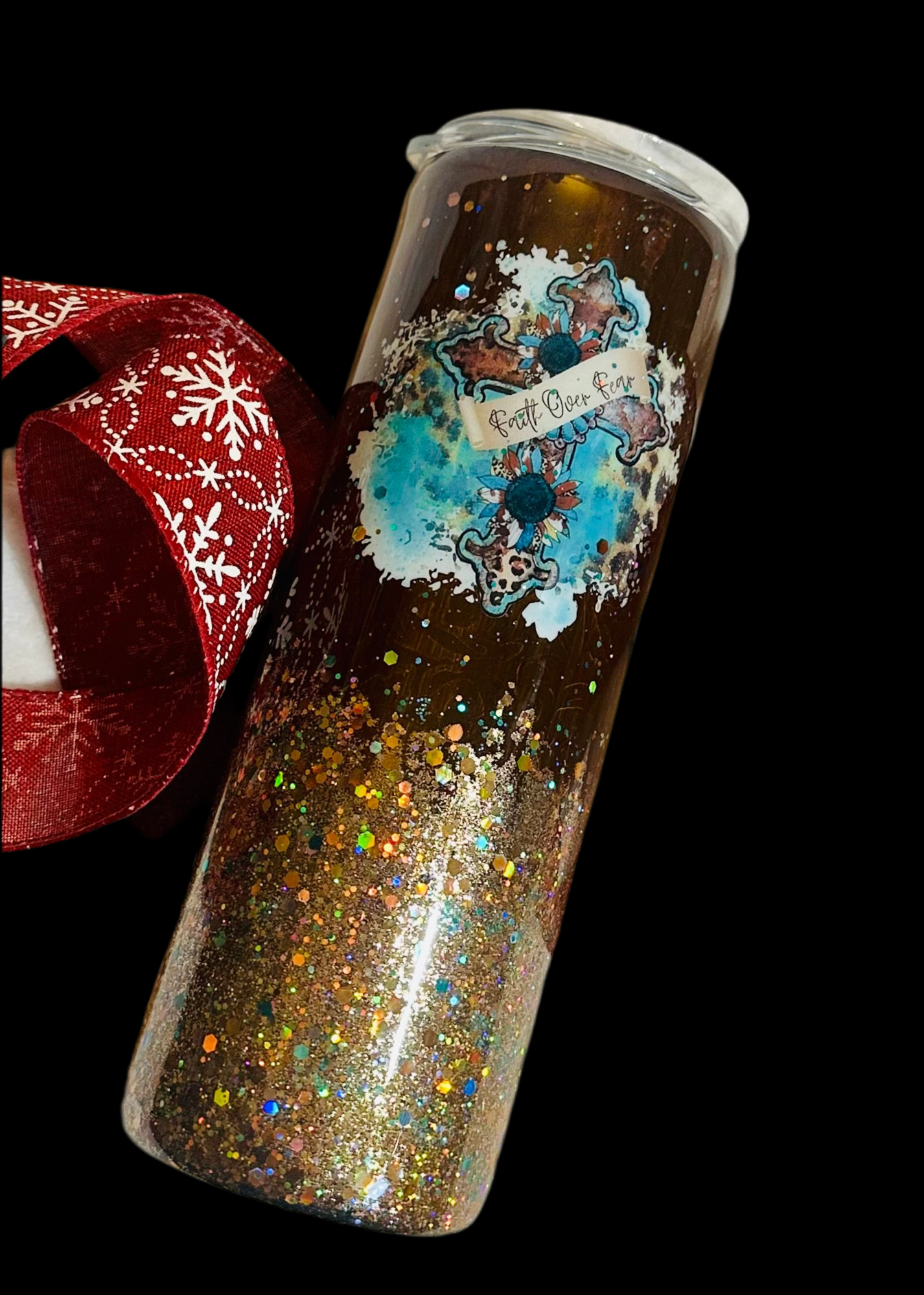 Cross Faith over Fear glitter epoxy Tumbler 20 oz hand made