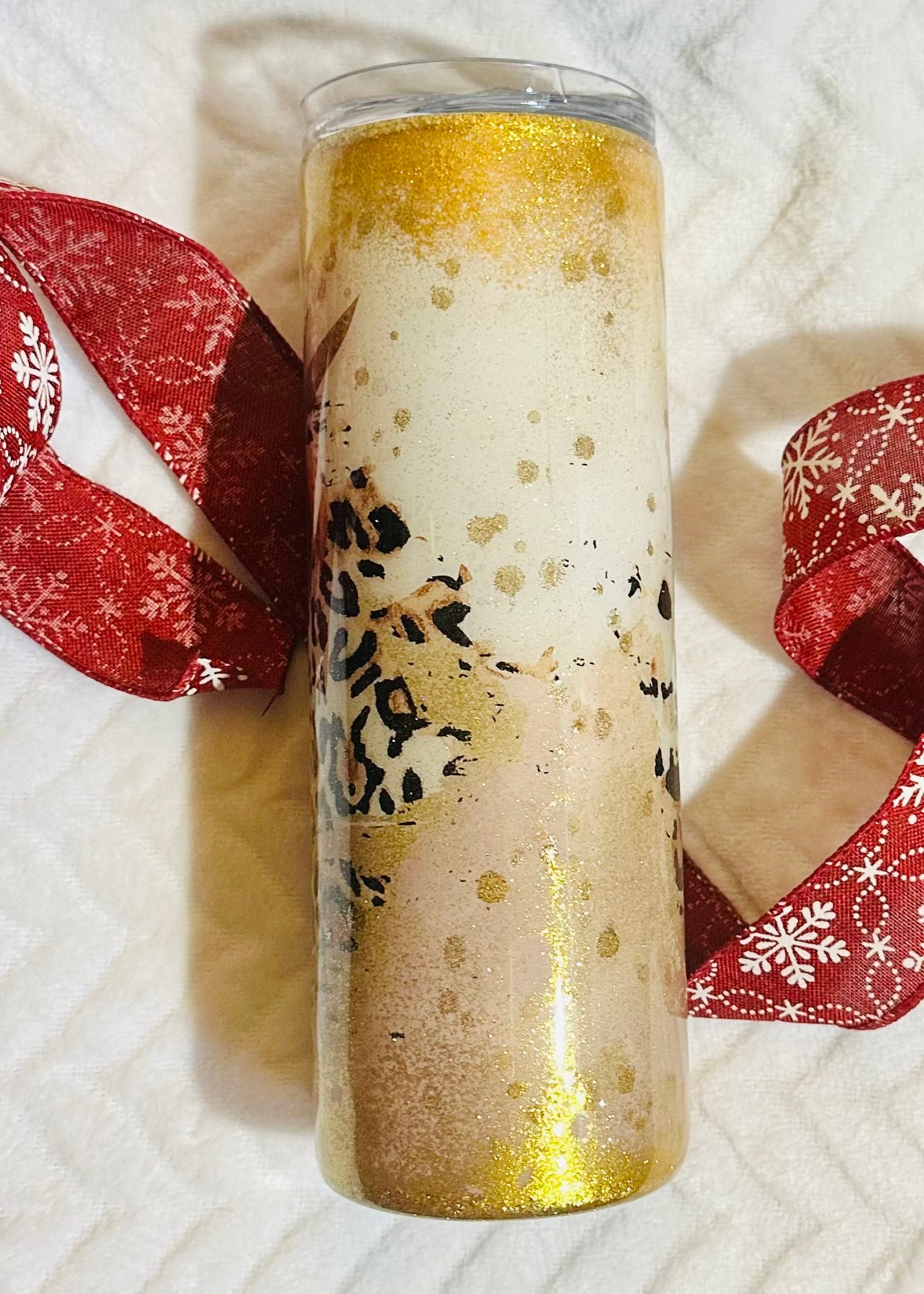 Gold Glitter and Highland cow vinyl epoxy Tumbler 20 oz hand made