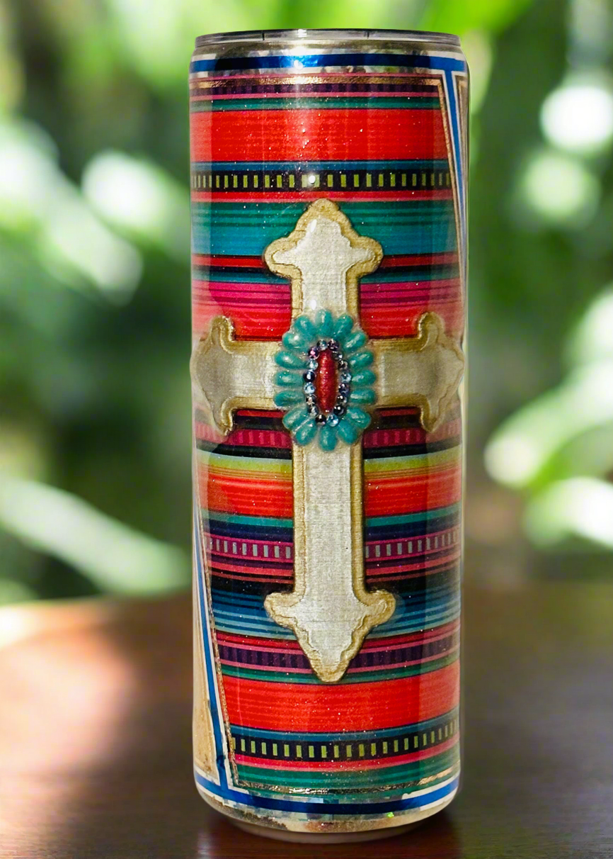 Carry your faith and your favorite drink in dazzling style with this Vibrant Serape Cross Tumbler! This stunning travel mug is a celebration of bold color and timeless belief, designed for those who aren't afraid to make a statement.